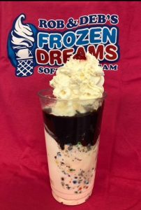 Are you up for the challenge? Our 80 OUNCE Adirondack Avalanche sundae is MASSIVE! Consisting of five tiers of your favorite ice cream, five toppings, two candies, and a mountain of whipped cream, nuts & cherries…and a huge spoon to conquer this sundae! Perfect for sharing with family and friends!